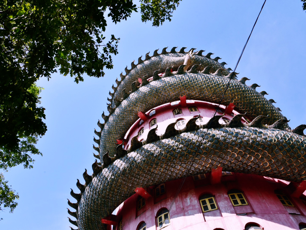 - El dragón en espiral y la torre rosa contrastan espectacularmente con el cielo azul de Tailandia, lo que lo convierte en un lugar icónico para fotografía de viaje.